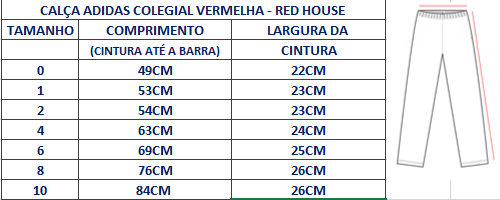 Use a tabela como referência para escolher o tamanho correto das peças.