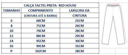 Use a tabela como referência para escolher o tamanho correto das peças.
