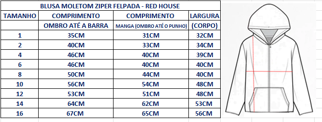 Use a tabela como referência para escolher o tamanho correto das peças.