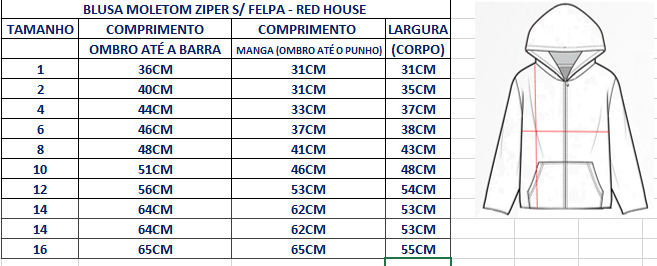 Use a tabela como referência para escolher o tamanho correto das peças.