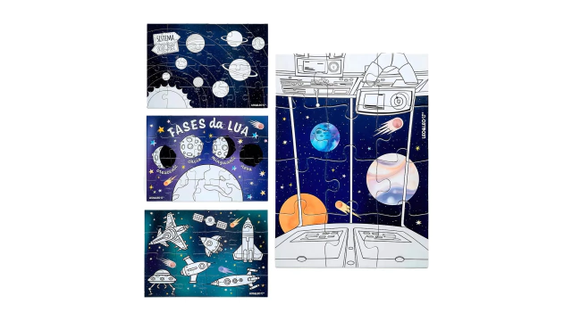 - QUEBRA CABEÇA - 4 EM 1 - CONTÉM 72 PEÇAS, 3 CANETAS HIDROCOR E MONTA 4 MODELOS LINDOS - COM TEMA GALÁXIA - AJUDA A EXERCITAR O CÉREBRO E AUMENTA SUA CONCENTRAÇÃO - ÓTIMO PARA OS DIAS DE CHUVA - COMPOSIÇÃO: PAPEL / CANETA HIDROCOLOR: RESINA TERMOPLÁSTICA, CARGA NÃO TÓXICA Á BASE DE ÁGUA, CORANTES E UMECTANTES, PAVIO DE ACETATO, PONTA DE FIBRA DE POLIÉSTER - NÃO RECOMENDADO PARA MENORES DE 3 ANOS.