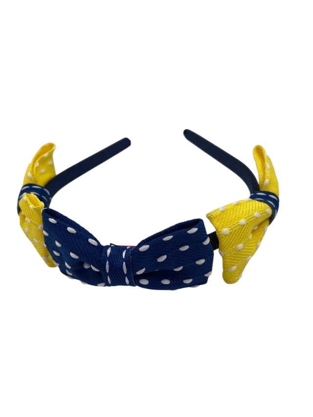 TIARA COM LACINHOS - AZUL MARINHO E AMARELO - GAROTA DO LAÇO